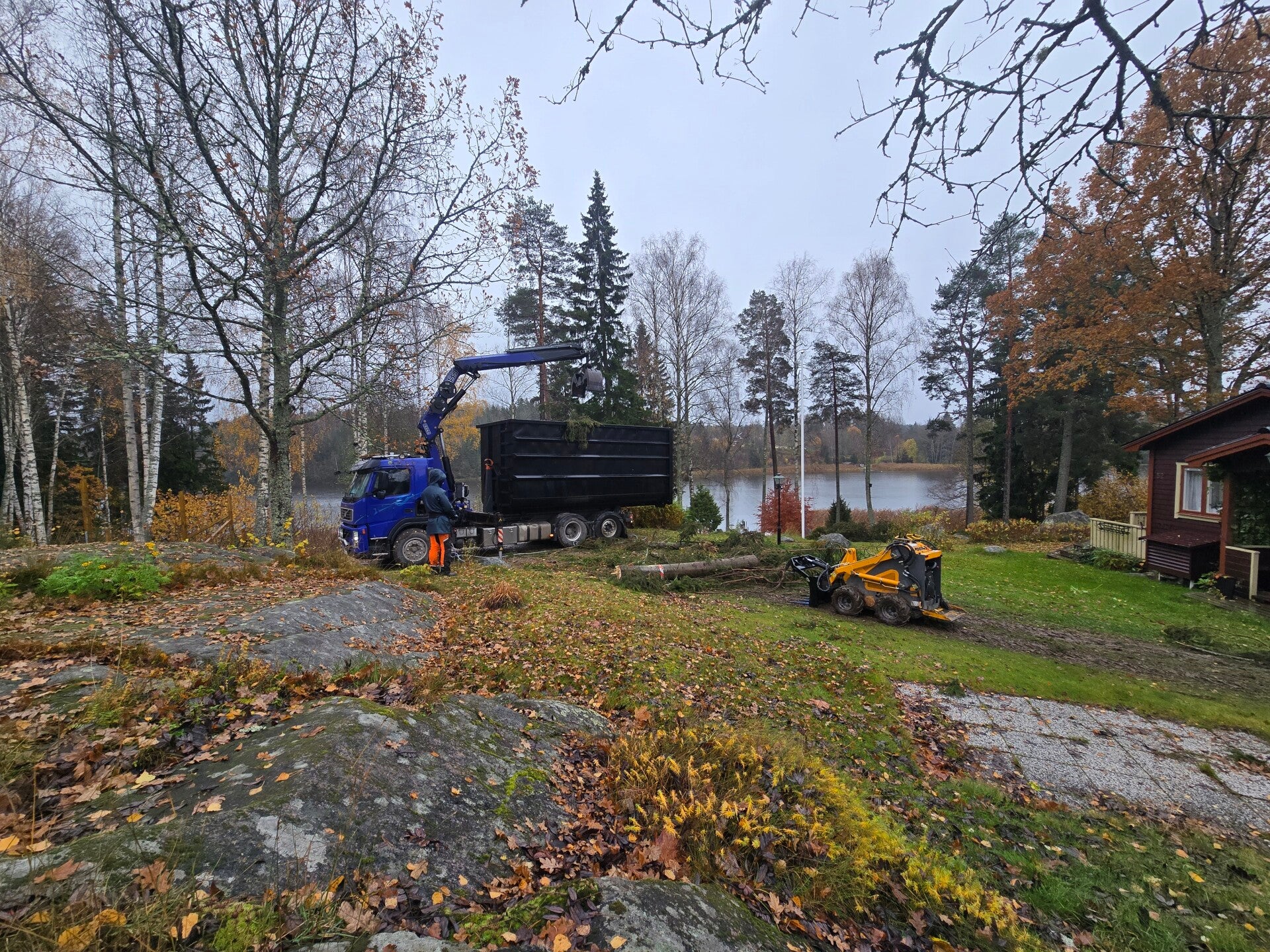 Enkla bortforsling med kranlastbil, vi har andra transport medel om det är vid behov.